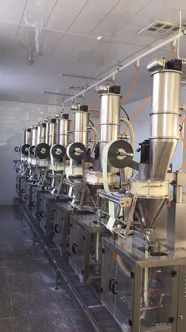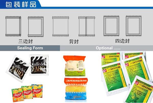 該機適用于包裝各種顆粒、粉混合物料。如:沖劑、麥片、白砂糖、味精、調(diào)味品、奶粉、豆奶粉、果仁、巧克力豆、咖啡、藥粉等物料實行全自動包裝。