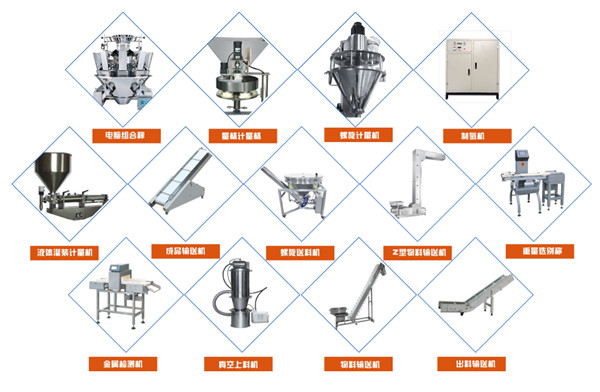采用變頻無級調(diào)速,同時可配置不同的下料機構達到對顆粒、液體、醬體、粉劑等物品的包裝。